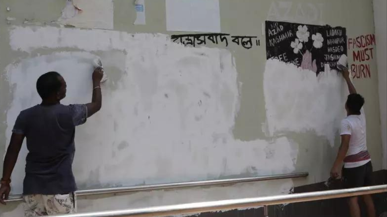 Kolkata’s Jadavpur University erases ‘Azad Kashmir’ graffiti from campus